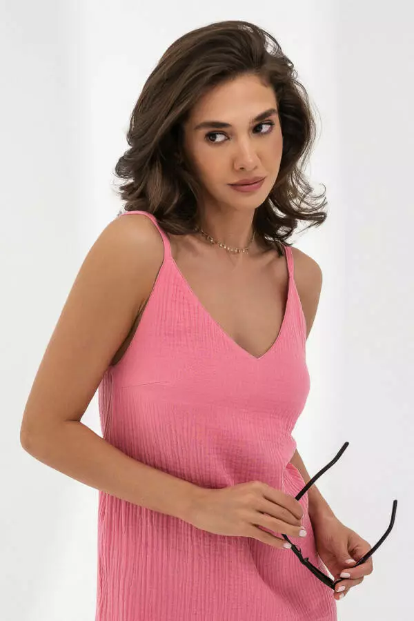 Жіночий мусліновий сарафан на тонких бретелях у ніжному кольорі «барбі» від German Volf — це справжній літній маст-хев для тих, хто цінує комфорт, легкість і стиль. Виготовлений із бавовняного мусліну, цей сарафан забезпечує чудову повітропроникність, що робить його ідеальним вибором для спекотних літніх днів. Натуральний бавовняний муслін відомий своєю ніжністю та м’якістю, він дозволяє шкірі дихати, даруючи відчуття свіжості й комфорту навіть у найтеплішу погоду.