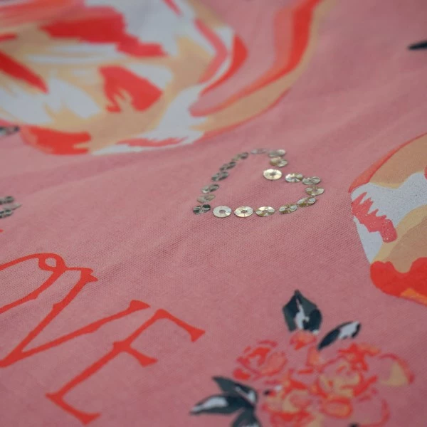 Принт фламинго с декоративной отделкой дополняет образ.