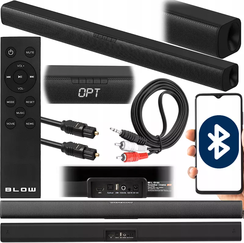 Звуковая панель BLOW - идеальное решение для любого аудиофила. Этот компактный динамик перенесет нас в кинозал или на концерт рок-звезд! Благодаря возможности подключения динамика к устройствам с поддержкой Bluetooth (например, телефон, смартфон, планшет) любимая музыка воспроизводится без лишних ограничивающих кабелей.