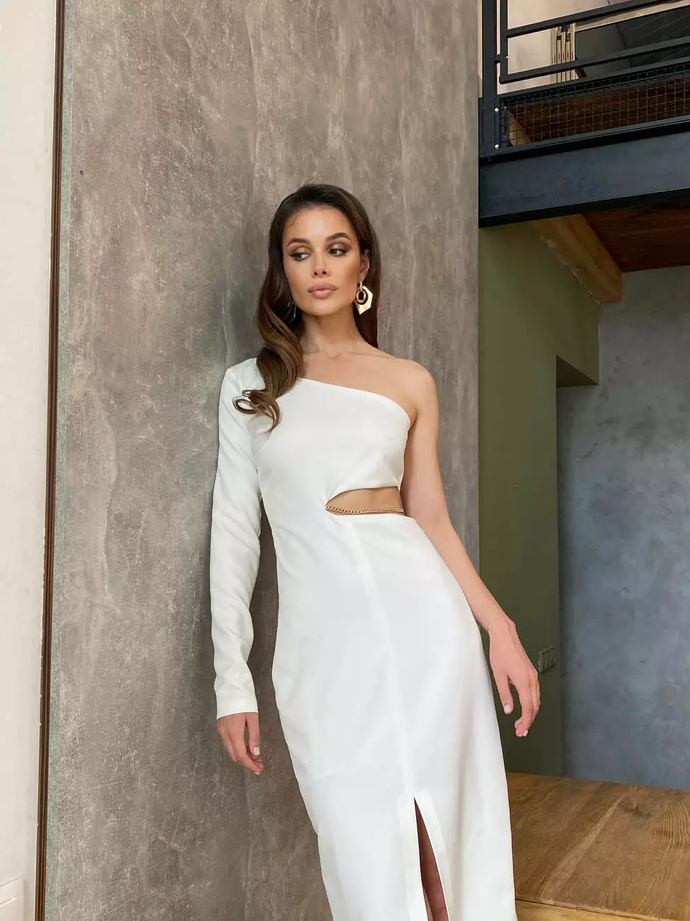 асиметричне декольте та пікантний виріз по талії разом з глибоким
