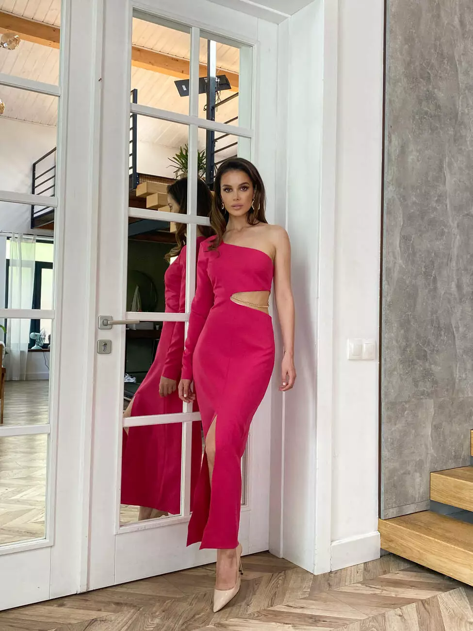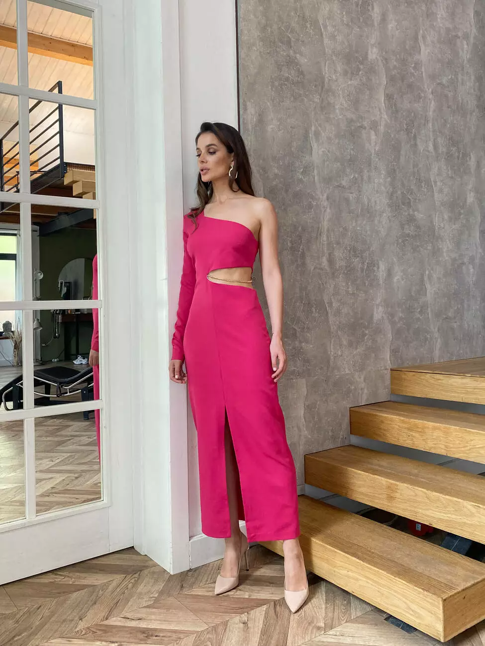 асиметричне декольте та пікантний виріз по талії разом з глибоким