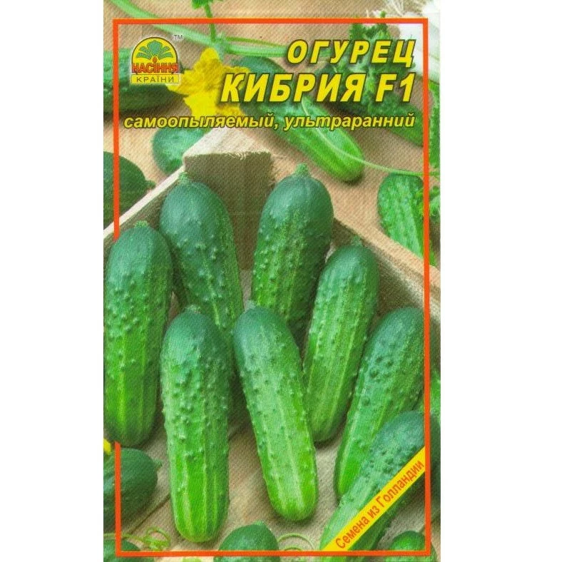 Огурец Кибрия F1 Ультраранний крупнобугорчатый партенокарпический гибрид. Плоды тёмные, однородной окраски, одинакового размера, идеальны для маринования и засолки. Высокая урожайность благодаря завязыванию 3-5 плодов в каждом узле. Рекомендуется для выращивания как на шпалере, так и без нее в открытом и в защищённом грунте. Производитель Rijk Zwaan - Голландия.