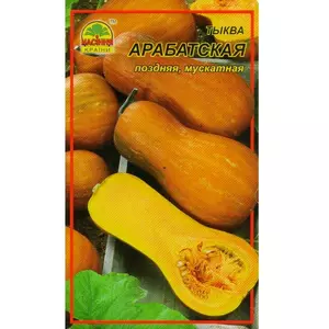 Арабатская - позднеспелый сорт мускатной тыквы. От всходов до технической спелости 110-140 дней. Плоды удлиненно-цилиндрической формы с утолщением к вершине, длиной 60-90 см, диаметром 13-20 см, массой 5-10 кг. Окраска плодов светло-желтая. Мякоть плотная, оранжевая, сладкая, хорошего вкуса. Плоды хорошо транспортируются и сохраняются. Сорт универсального использования. Схема посадки — 120*70 см