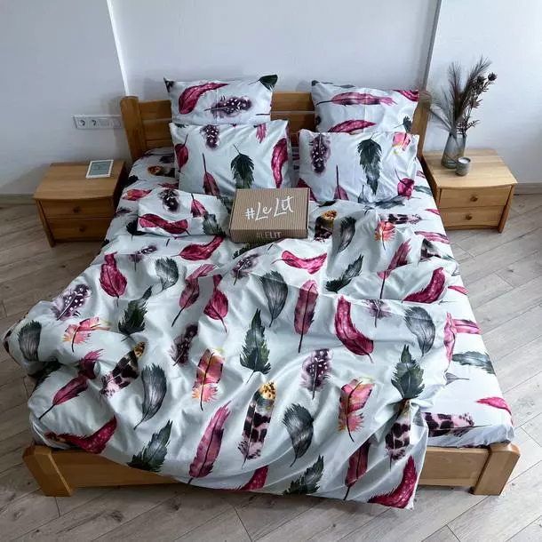 Семейное постельное белье LeLIT 0008 белое с принтом "Яркие Перья"