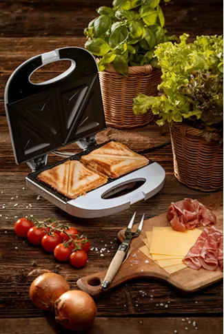 Практичный апарат для сэндвичей мощностью 750 Вт. Он позволяет приготовить одновременно 2 бутерброда, которые будут разделены на 4 треугольных части. Специальное покрытие нагревательных пластин предотвращает прилипание, что упрощает очистку устройства. Термостат сигнализирует о том, что пластины достаточно нагреты, и обеспечивает правильную температуру на протяжении всего процесса приготовления. Благодаря этому приготовленные бутерброды получаются хрустящими и золотистыми. Для удобства тостер можно хранить в вертикальном положении. Мощность 750 Вт Нагревательные пластины с антипригарным покрытием 2 бутерброда (4 треугольных бутерброда) одновременно Термостат, поддерживающий оптимальную температуру поджаривания бутербродов Световой индикатор термостата показывает, что печь готова к выпечке. Индикатор питания Корпус не нагревается Можно хранить в вертикальном положении Место для наматывания веревки