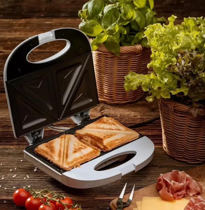 Практичний прилад з потужністю 750 Вт, може приготувати два бутерброди, які розділені на чотири трикутні шматочки. Особливу антипригарне покриття пластин робить очищення пристрою дуже легким. Термостат показує достатній нагрівання пластини і забезпечує комфортну температуру на протязі всього процесу підсмажування. Бутерброди виходять із золотою, хрусткою і смачною скоринкою. Для зручності, тостер можна зберігати у вертикальному положенні. Модель проста в управлінні і легко чиститься. ADLER AD 301 допоможе приготувати швидкі і оригінальні сніданки для всієї родини.