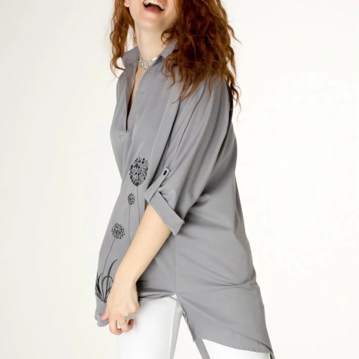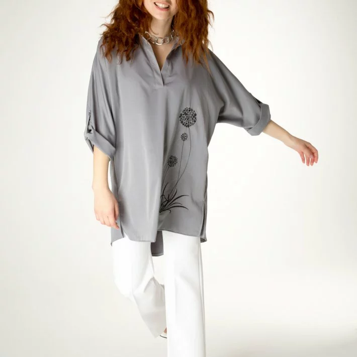 Туніка з матеріалу, який трохи щільніше сорочкової тканини, з