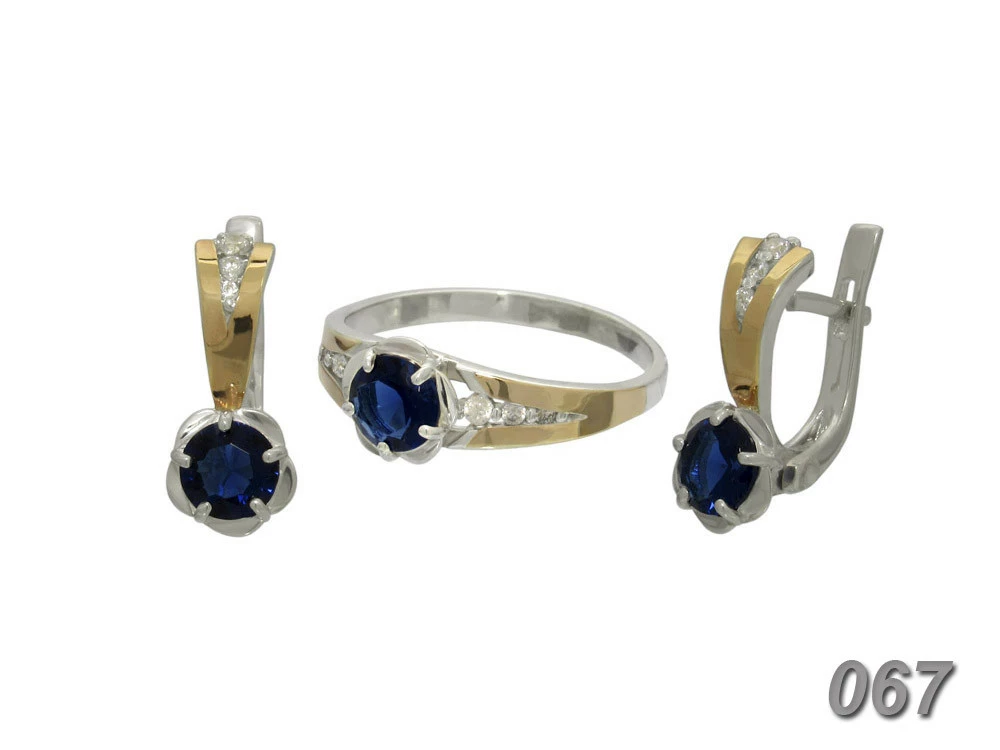 Гарнитур из серебра с золотыми пластинами и фианитами.