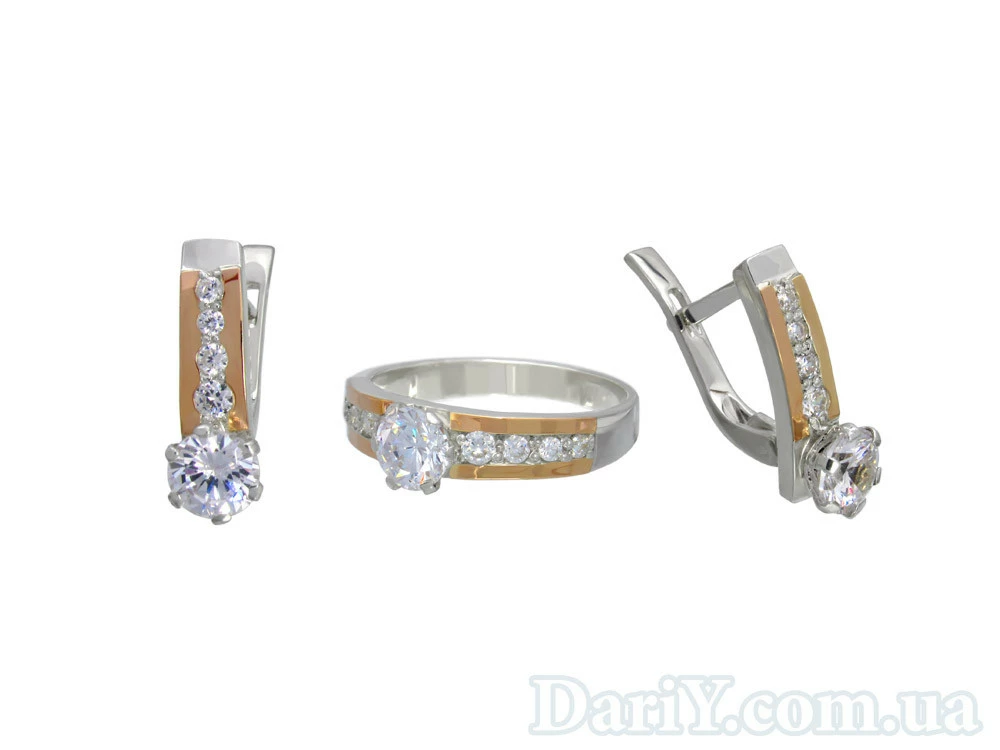 Серебряный набор с золотыми накладками и фианитами. "Нона".
