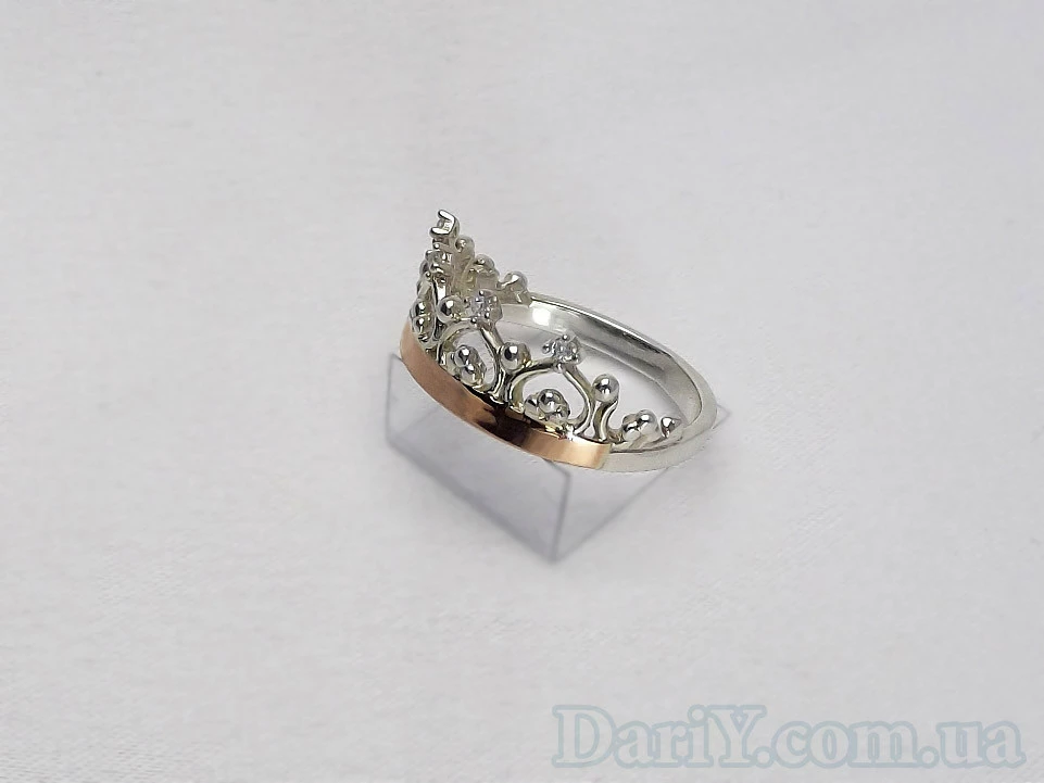 Серебряное кольцо с золотой пластиной и камнями (фианит) Корона