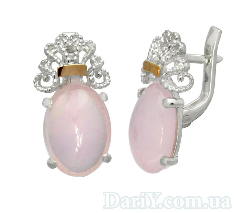 овальным кабошоном из розового кварца.