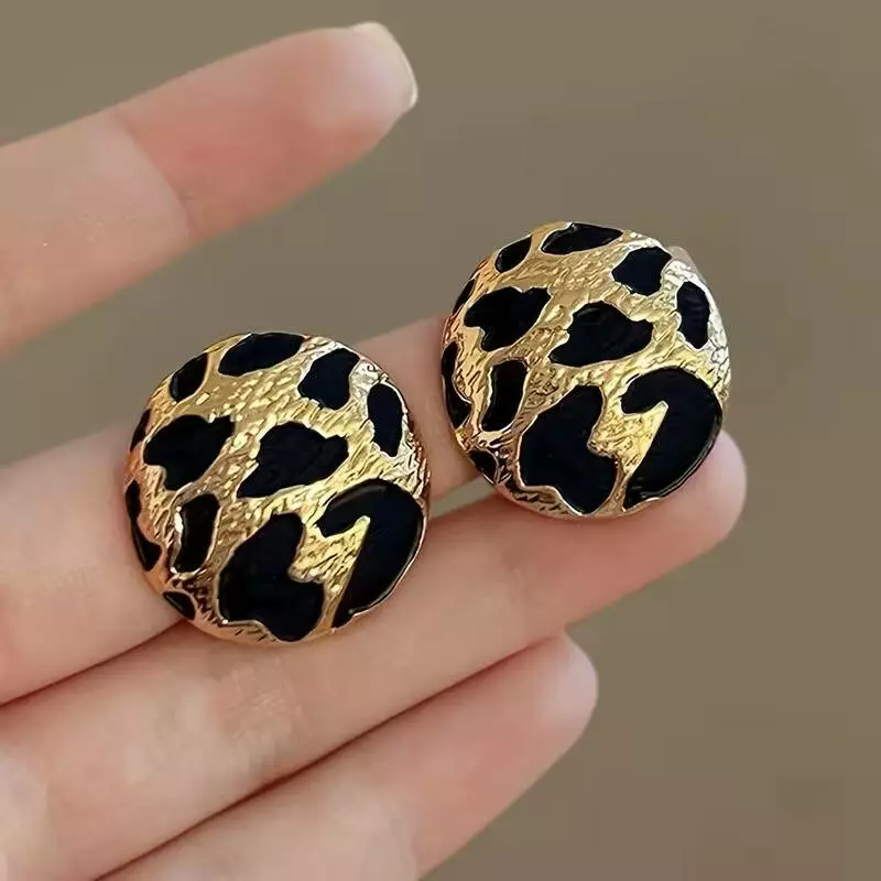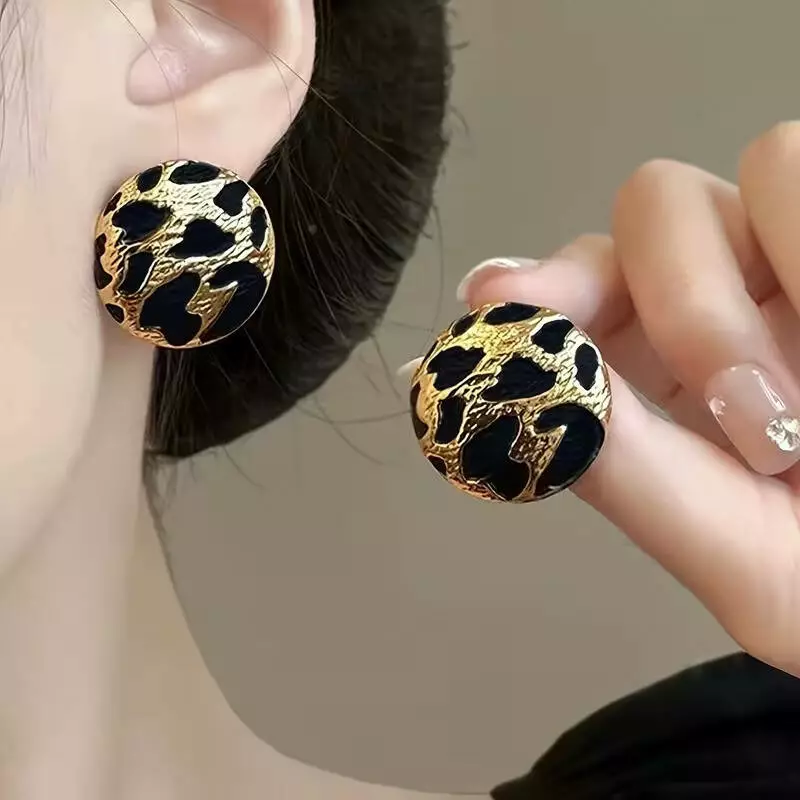 Стильний набір жіночих сережок у золотисто-чорному виконанні —