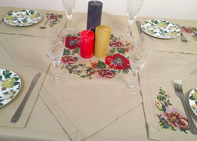 Стирайте скатерть с вышивкой нейтральными моющими средствами при максимальной температуре 40 градусов