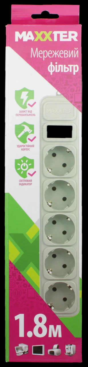 Сетевой фильтр Maxxter SPM5-G-6G 5 гнёзд, 1.8 метра