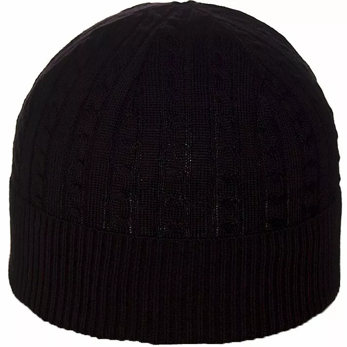 Мужская шапка выполнена в классическом стиле тонкой узорной вязкой