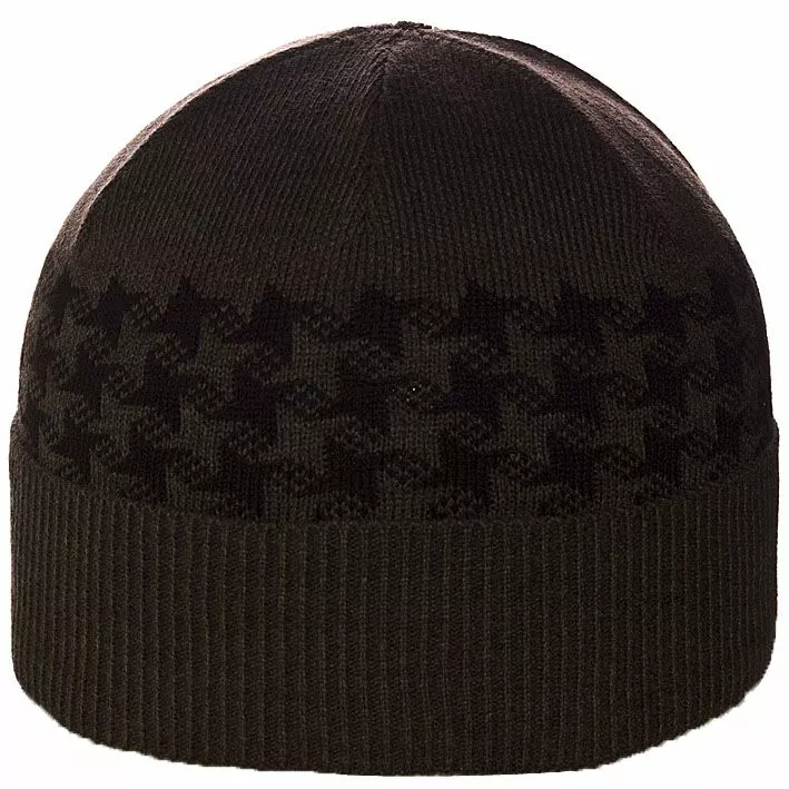 Мужская шапка выполнена в классическом стиле тонкой вязкой -