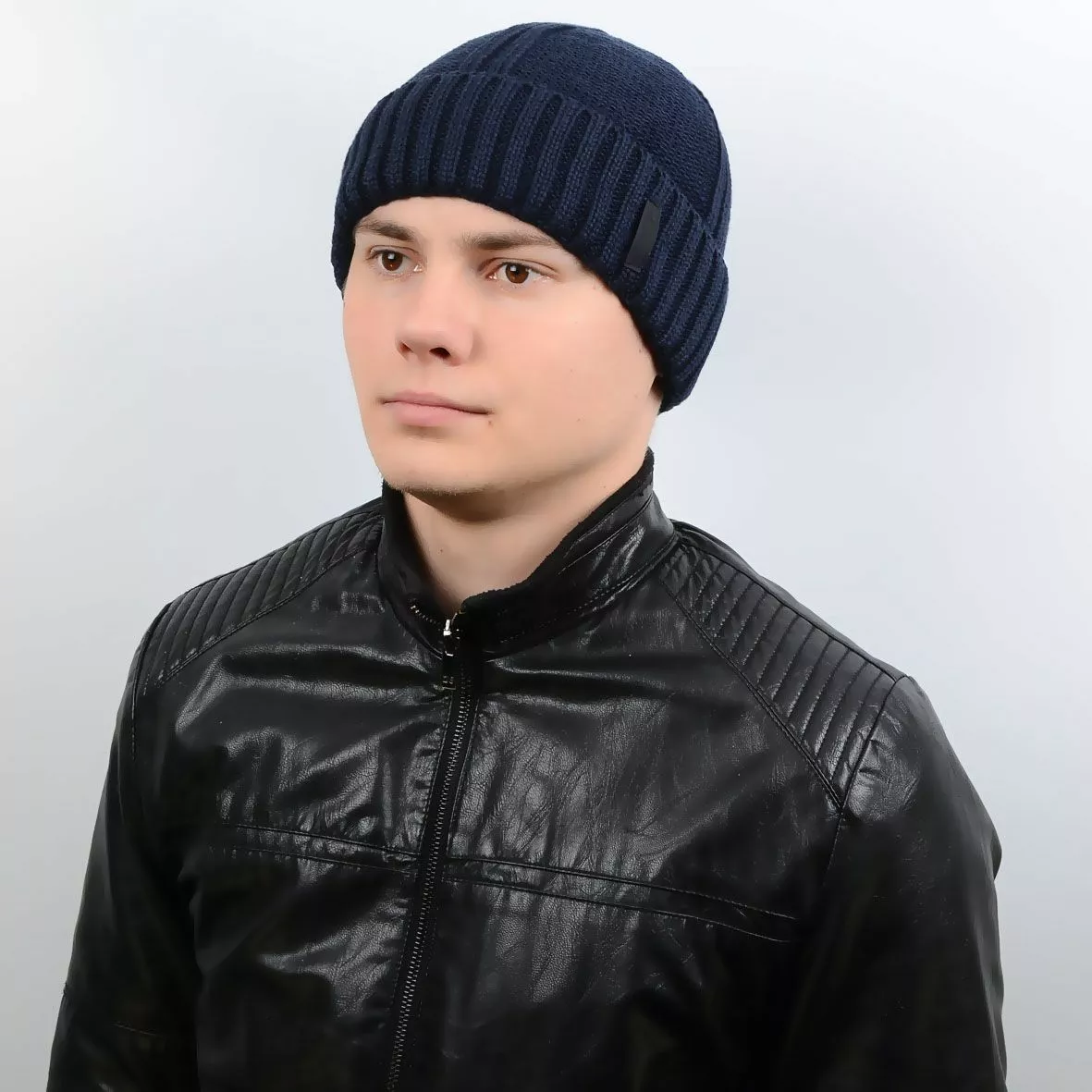 Красивая вязаная мужская шапка с подворотом - подчеркнет вашу