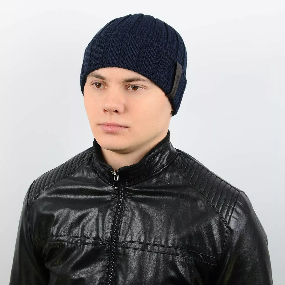 Теплая мужская шапка с подворотом, выполнена из шерсти с