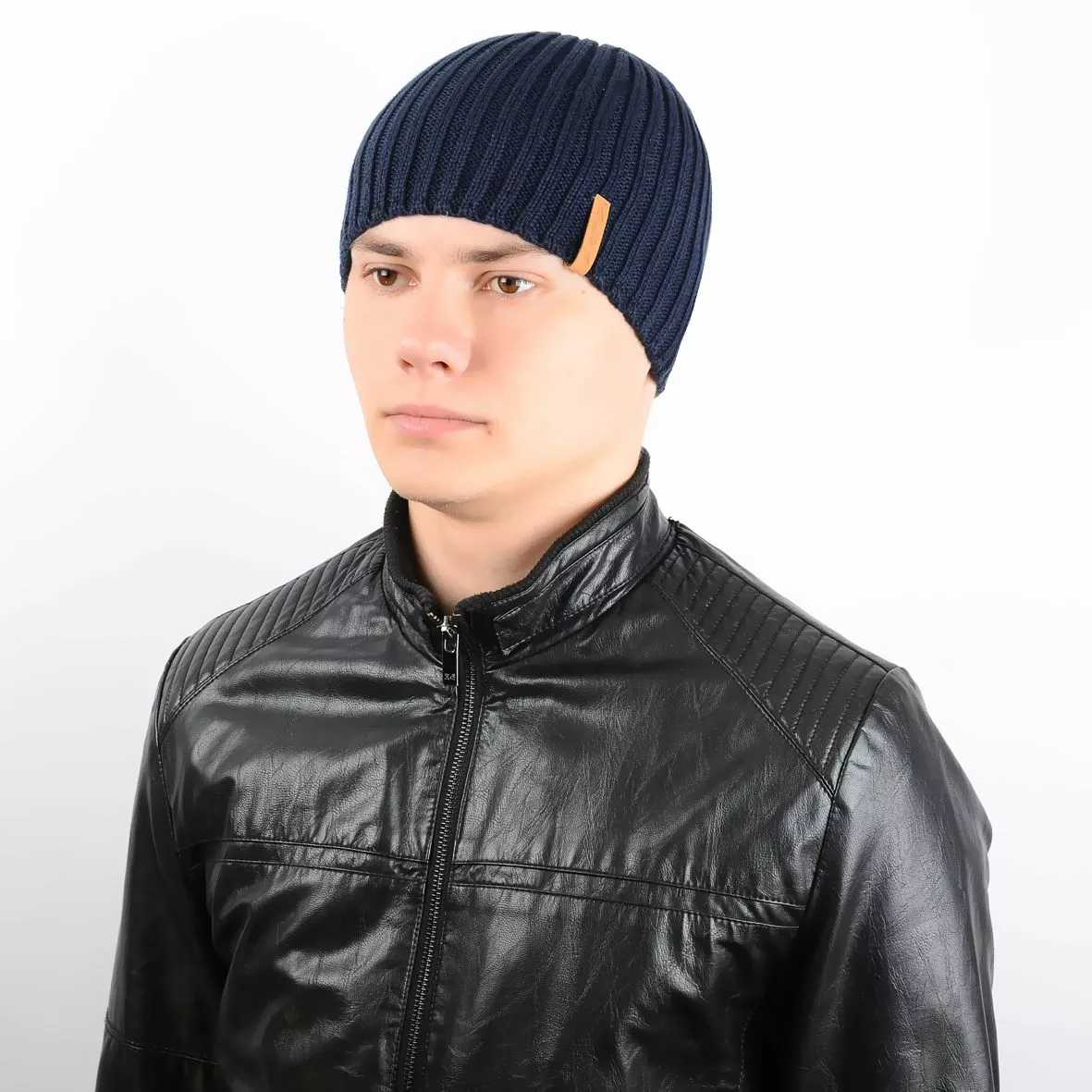 Теплая мужская шапка, изготовлена из шерсти с добавлением
