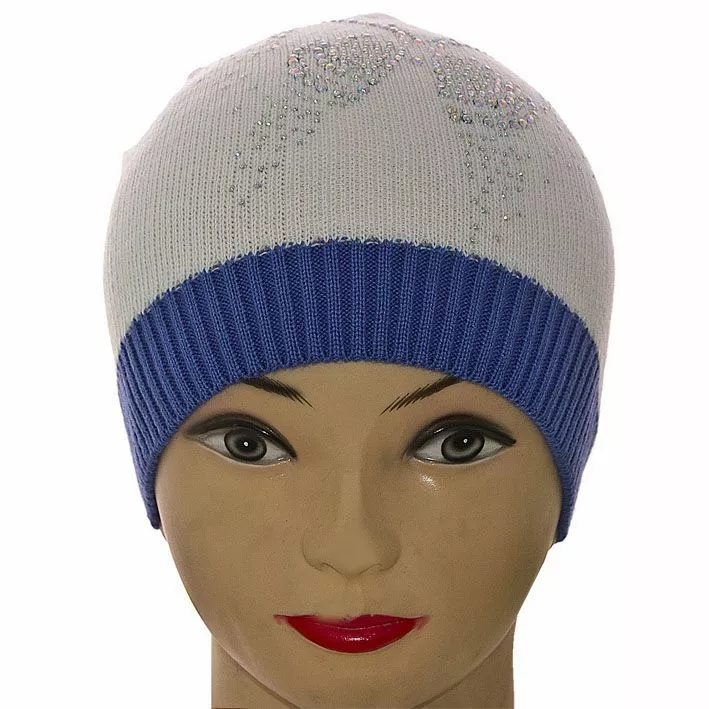Яркая шапка для девочки, украшена рисунком из страз в виде бабочки,