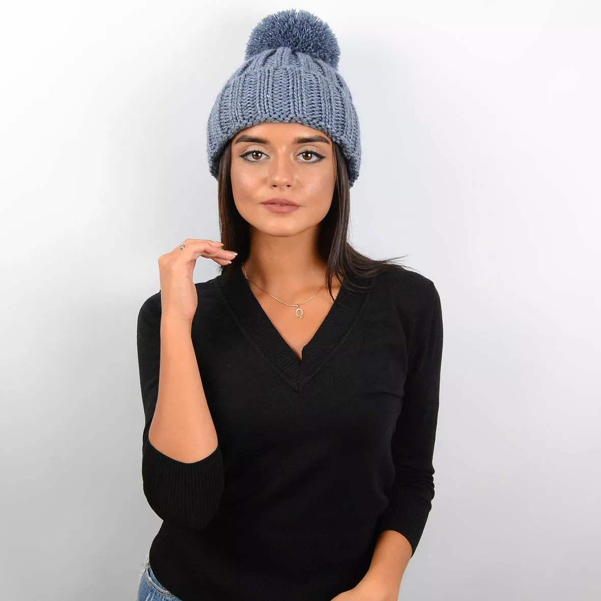 Вязаная женская шапка с пышным ниточным помпоном - придаёт