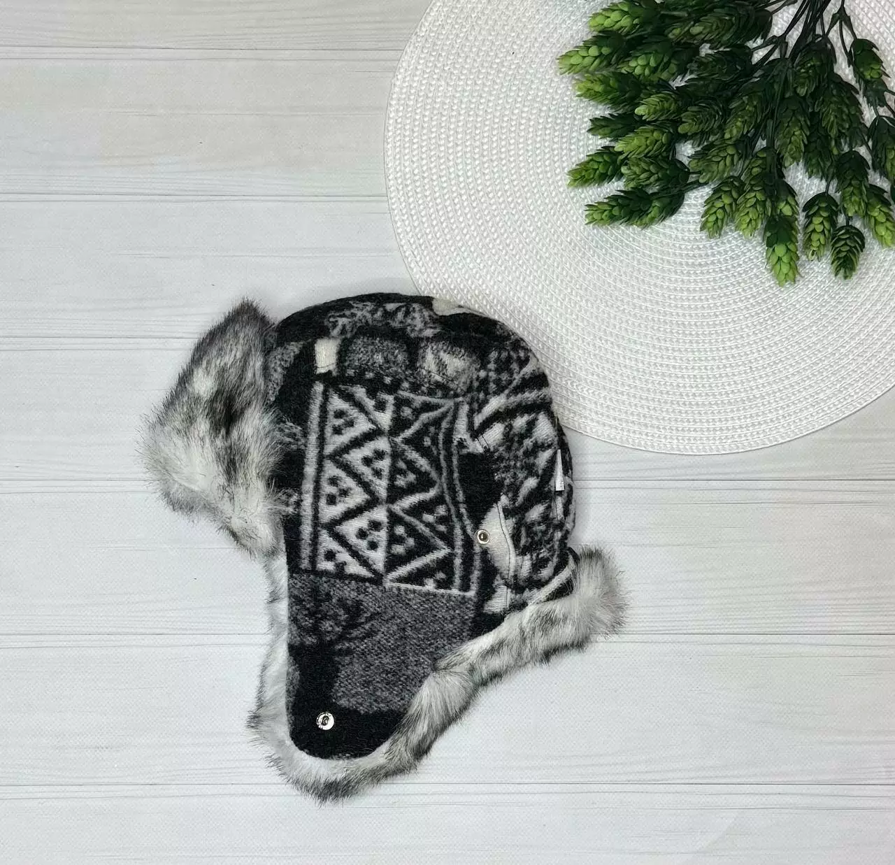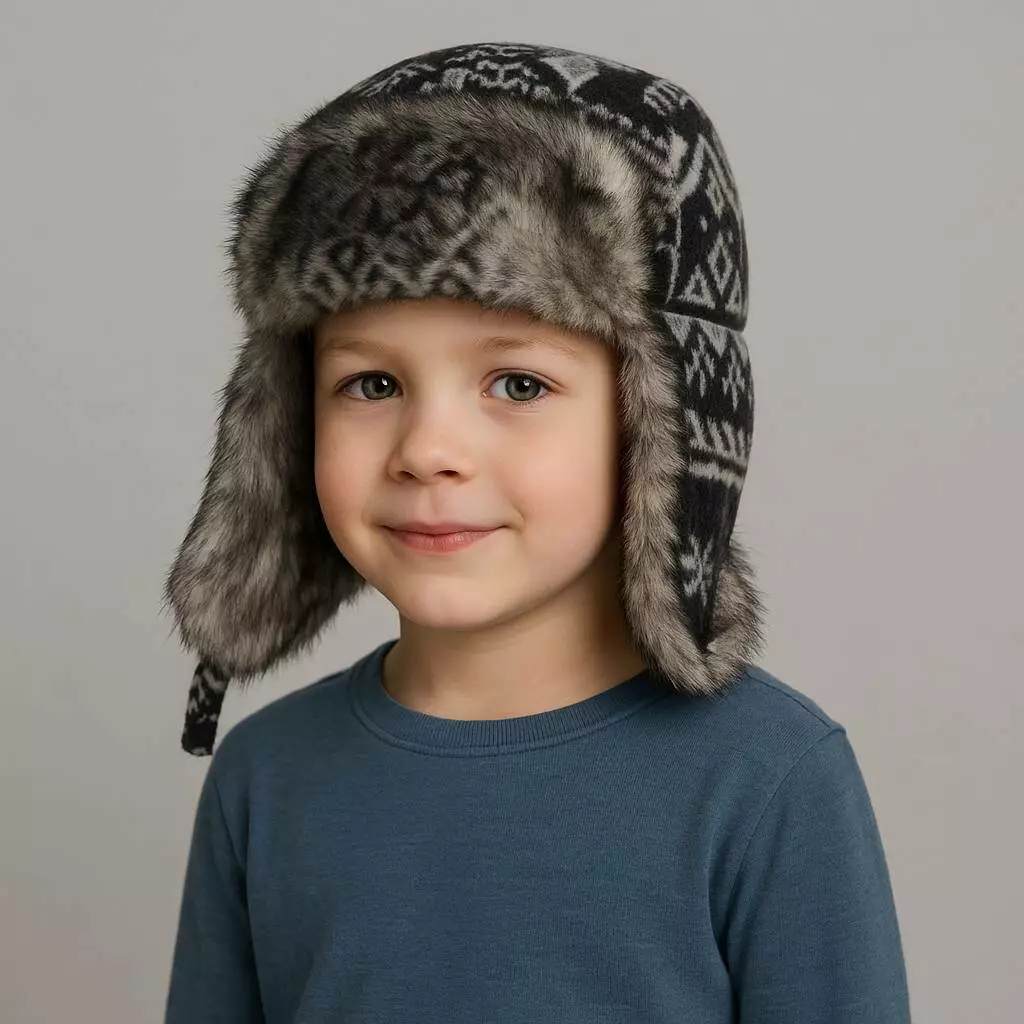 Шапка шерсть+утеплювач+фліз хлоп. Сірий 9341 Elf kids
