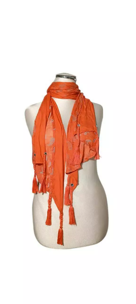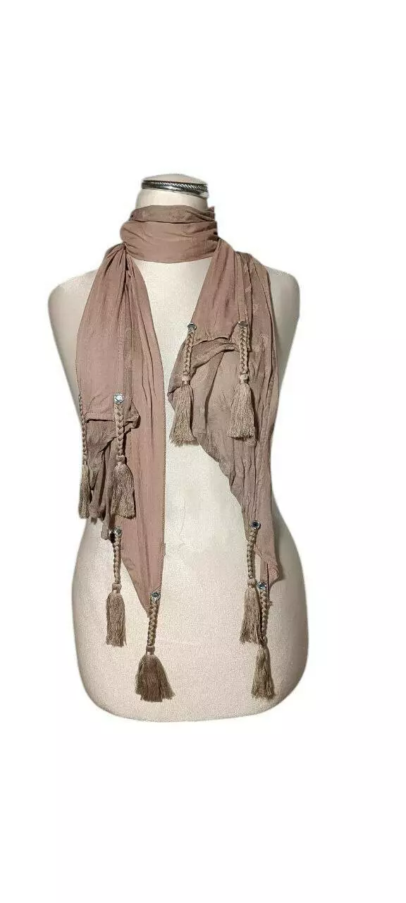 Шарф з бавовна з китицями та стразами, розміром 170*50 см.