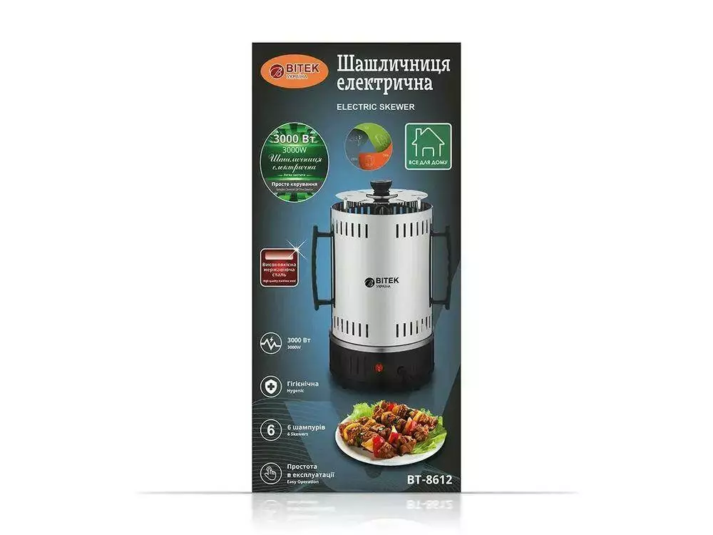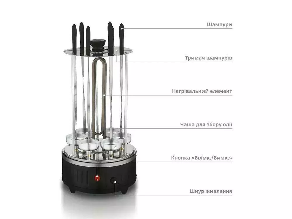 Шашличниця електрична вертикальна 3000Вт 6 шампурів BITEK BT-8612/ 6624 (6)