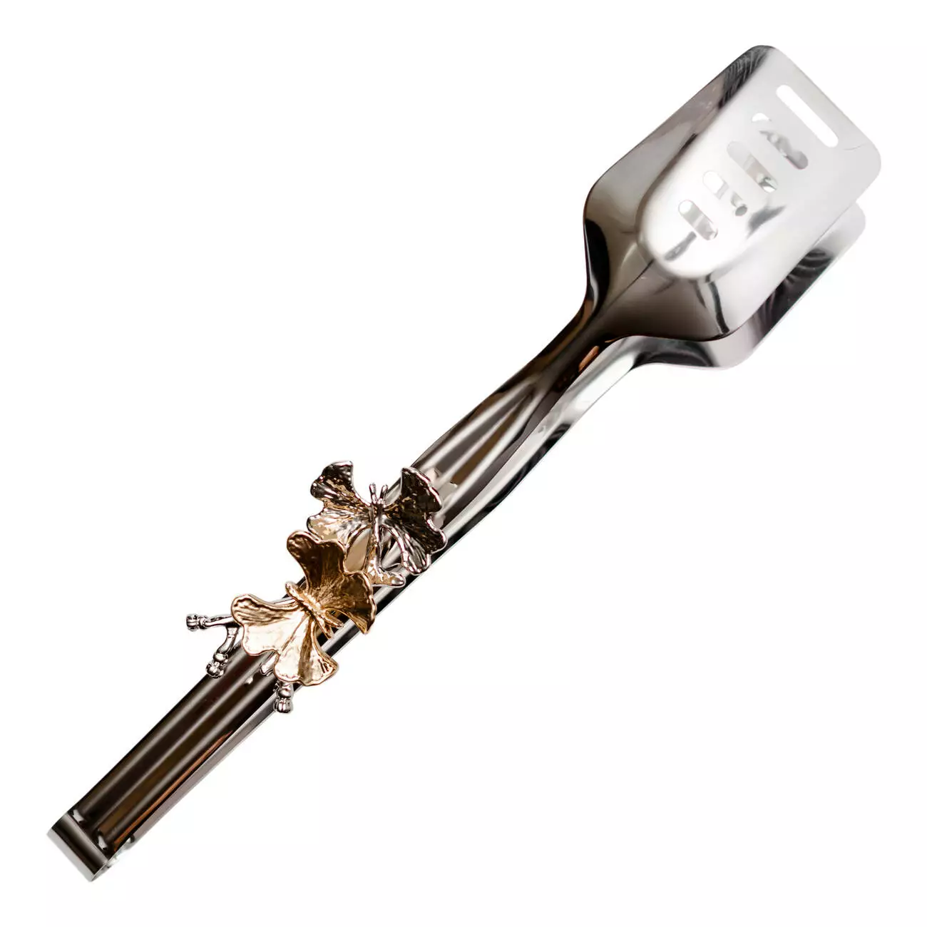 Універсальні сервірувальні щипці з об'ємними декоративними елементами - естетичний та зручний елемент сервірування святкового столу, фуршетів та банкетів. Щипці мають широкі гладкі "губки" з прорізами, що робить їх ідеальним варіантом для подачі салатів із соусом, лазаньї, гарнірів, випічки та хлібців. Прорізи дозволяють стікати зайвої рідини, не деформують страви.