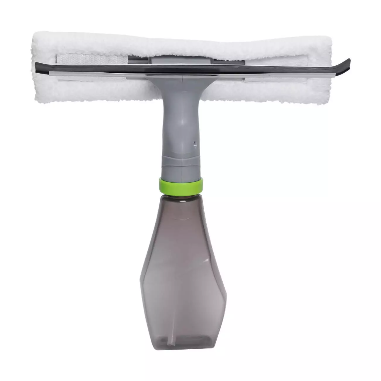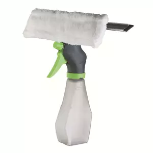 Це багатофункціональний інструмент для миття вікон, що поєднує в собі розпилювач миючого розчину, м'яку насадку (моп) для протирання та гумовий водозгін (скребок) для видалення води та отримання чистої, без розводів поверхні.