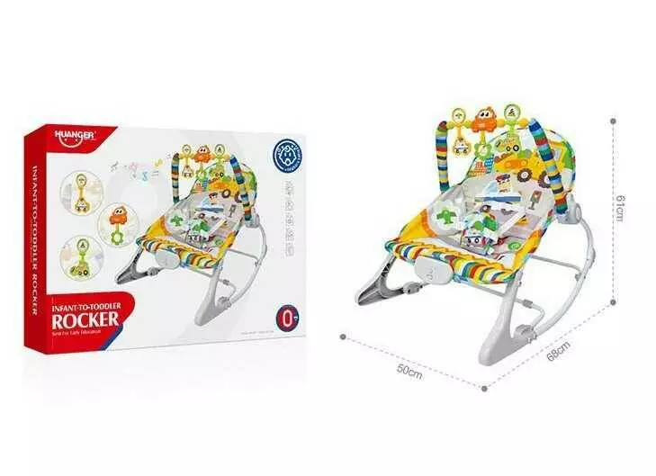 Шезлонг HE 0655 (6) регулювання гучності, мелодії, 3 підвіски, заспокійлива вібрація, на батарейках, регулювання положення, в коробці