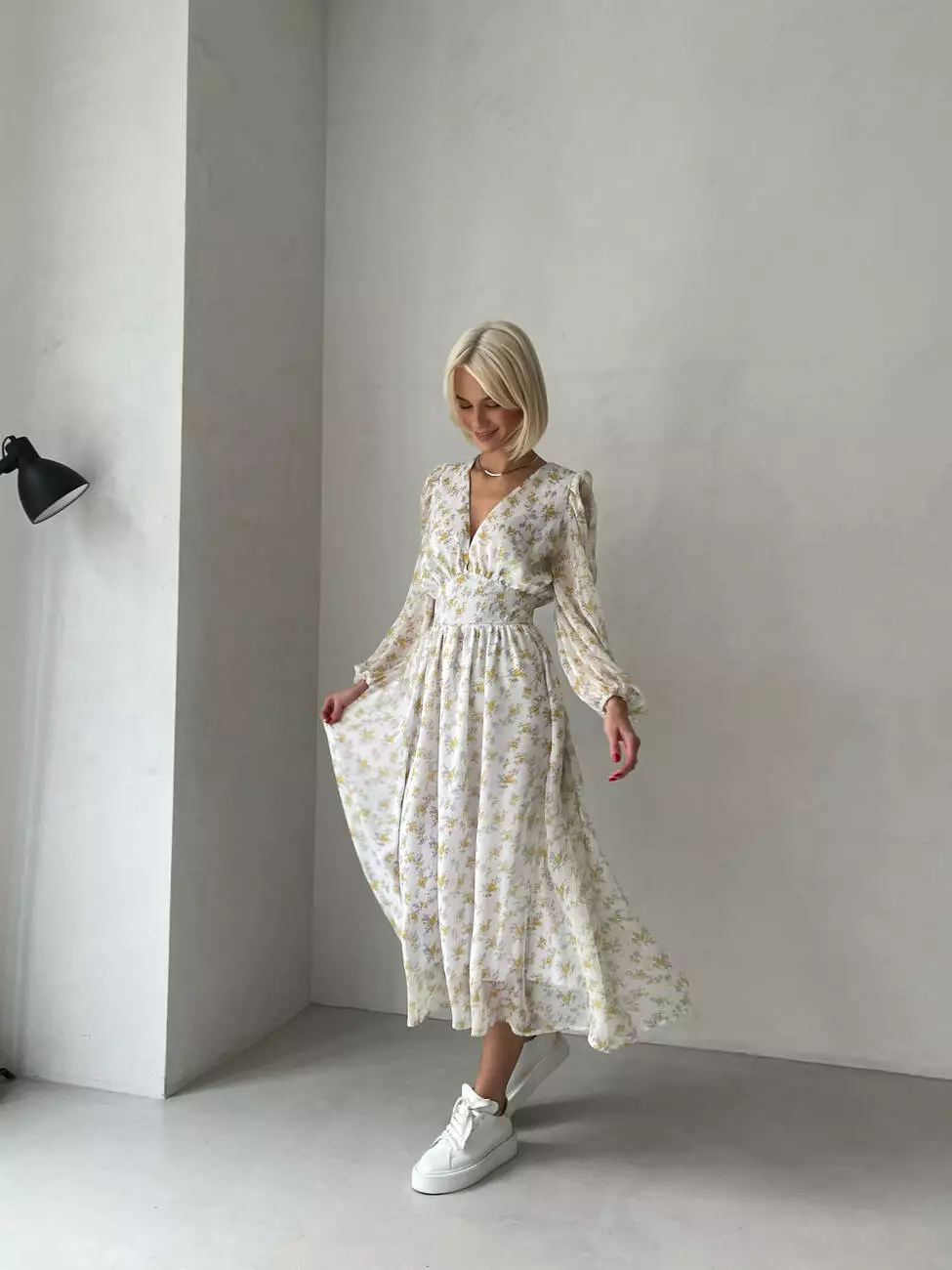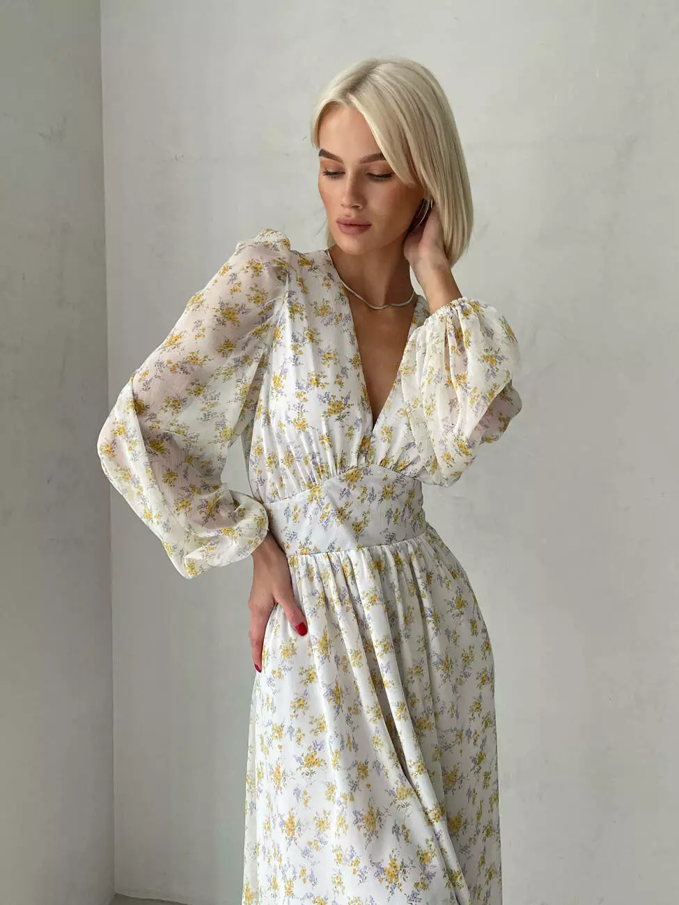 Модель виготовлена з тактильного приємного шифону з квітковим принтом.