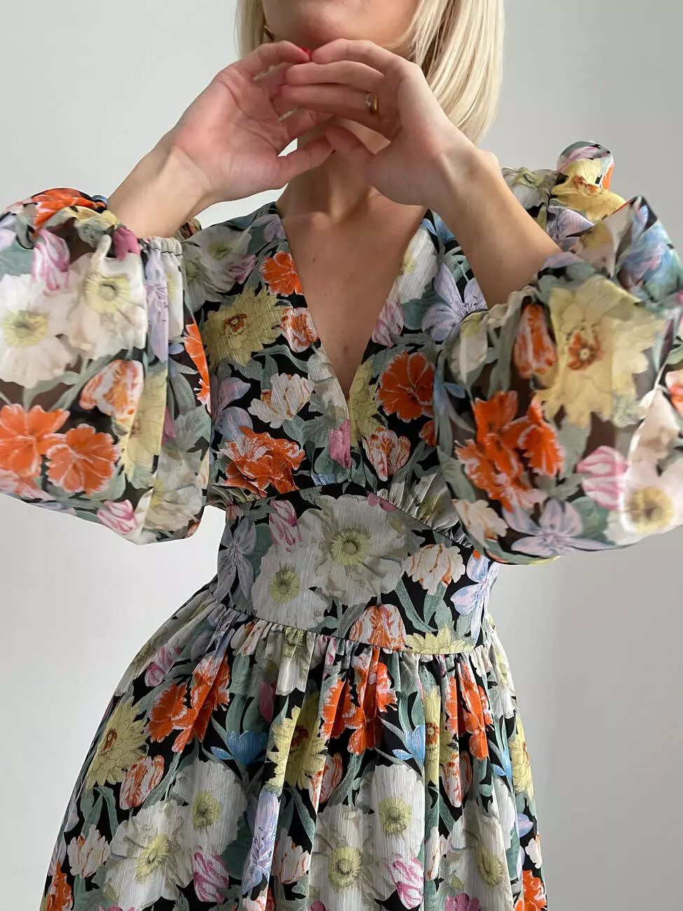 Модель виготовлена з тактильного приємного шифону з квітковим принтом.