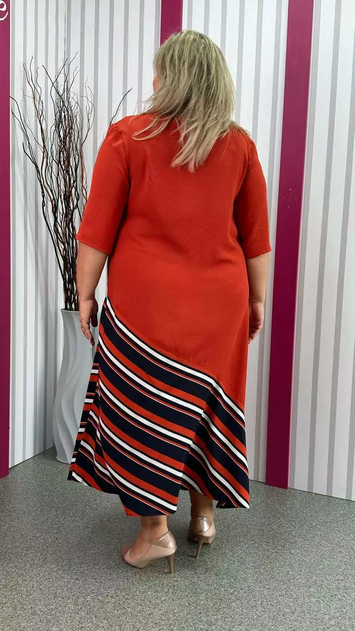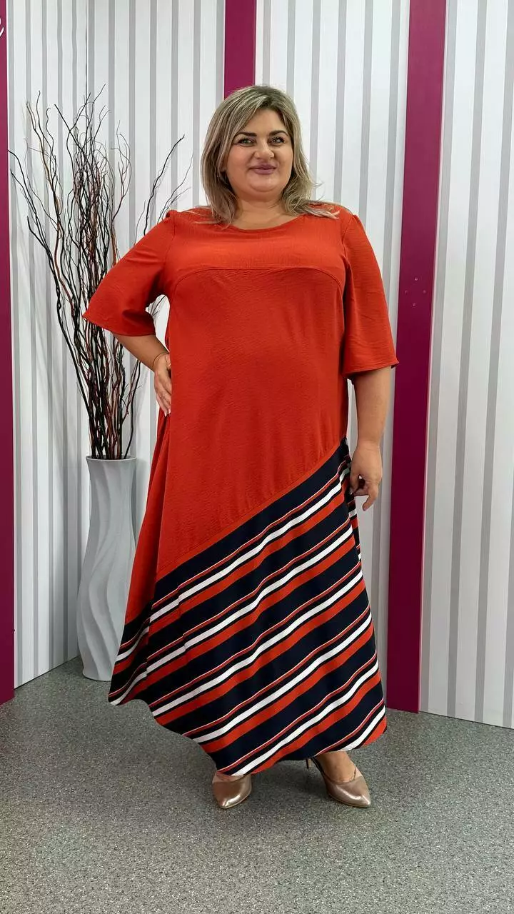шикарна сукня з американського крепу виробництва Туреччина комбінована з супер софтом. Тканина трохи жата, має невелику розтяжність. Фасон-А образний силует з кокеткою, рукавом втачним. Добре сідає по фігурі, струнить.