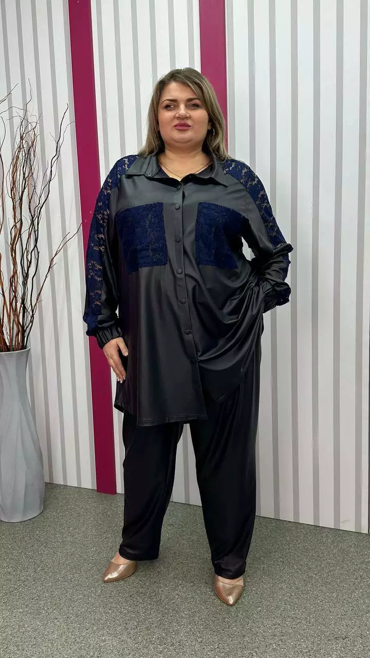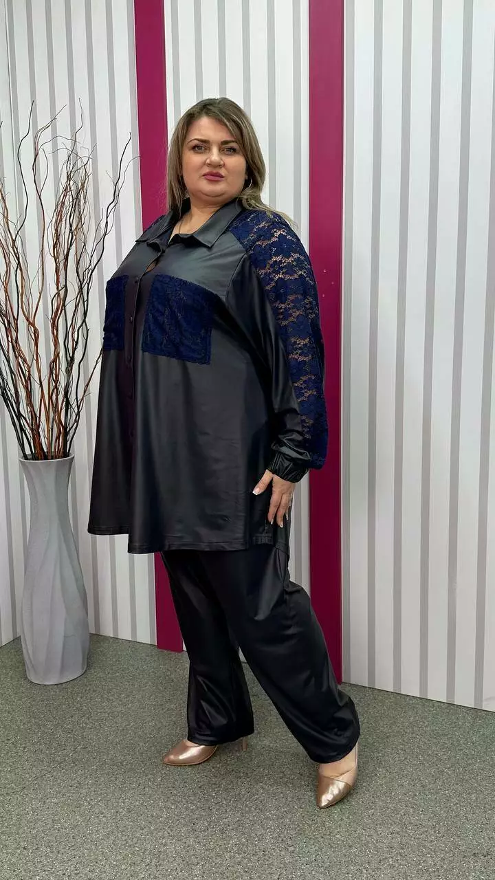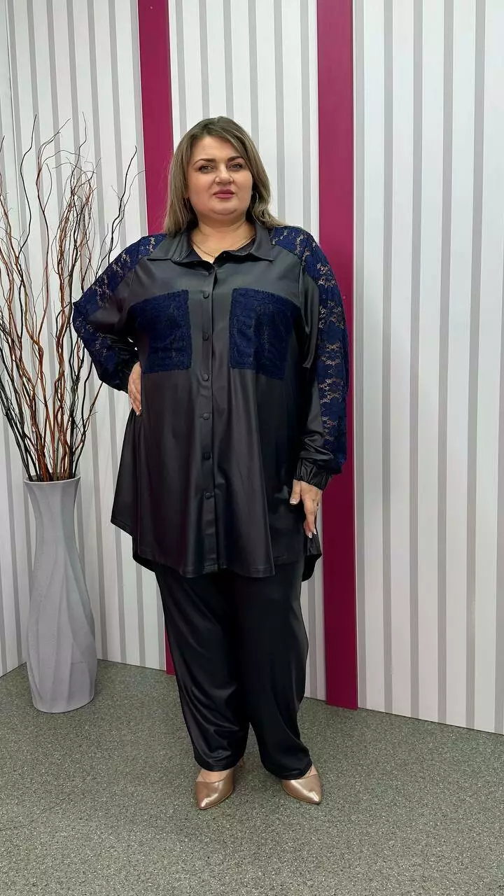 Шикарна вільна туніка-сорочка "Люкс" темно-синя 58-60 62-64 66-68 70-72 74-76