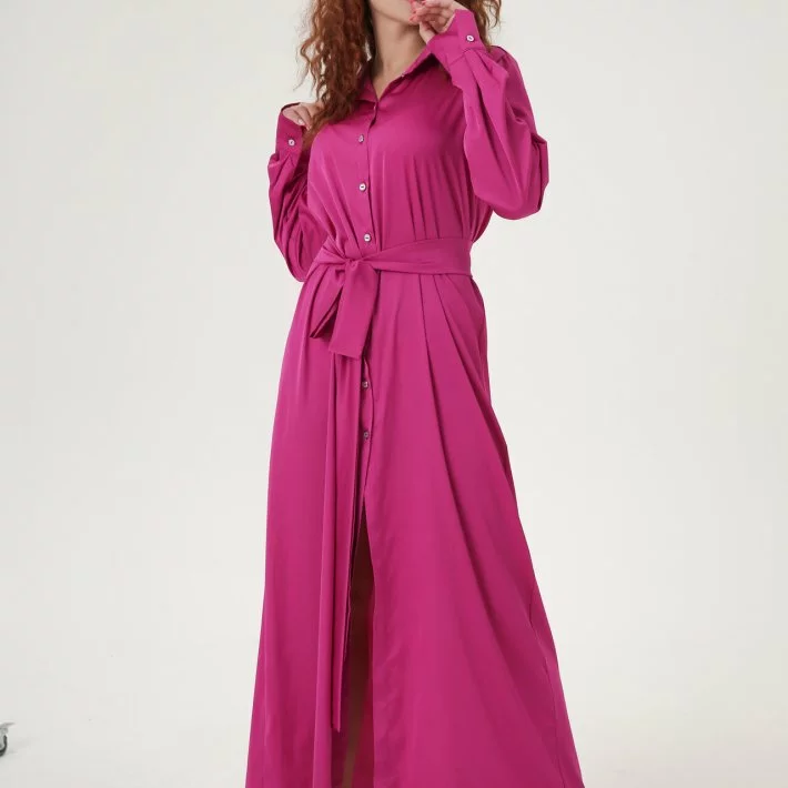 Довга сукня-сорочка з шовку, застібка спереду на гудзики, широкий