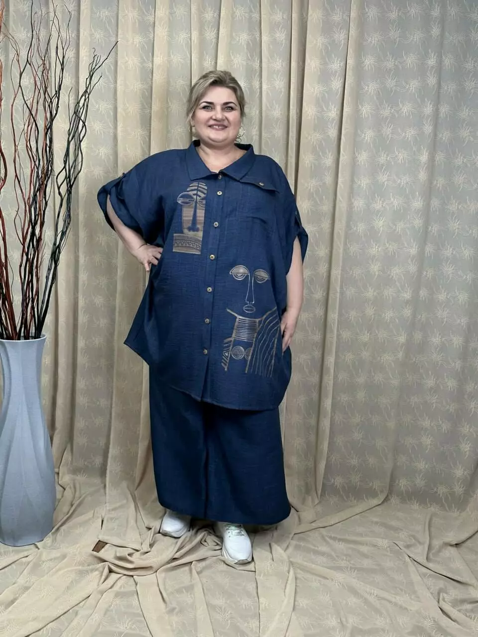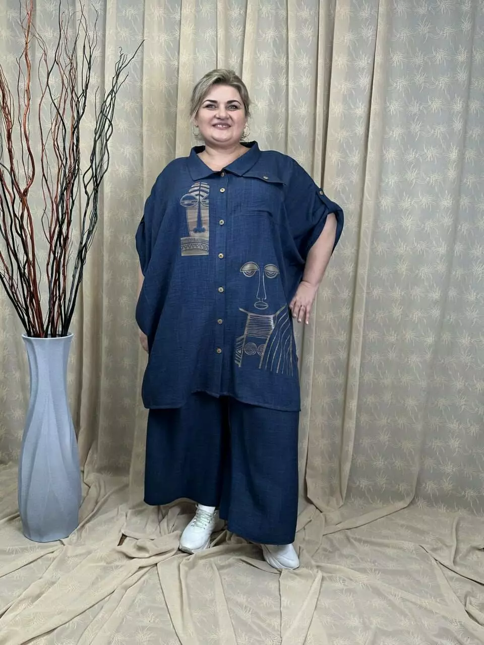 Дуже широкі штани-спідниця з легкої тканини льон-бохо, без бокового