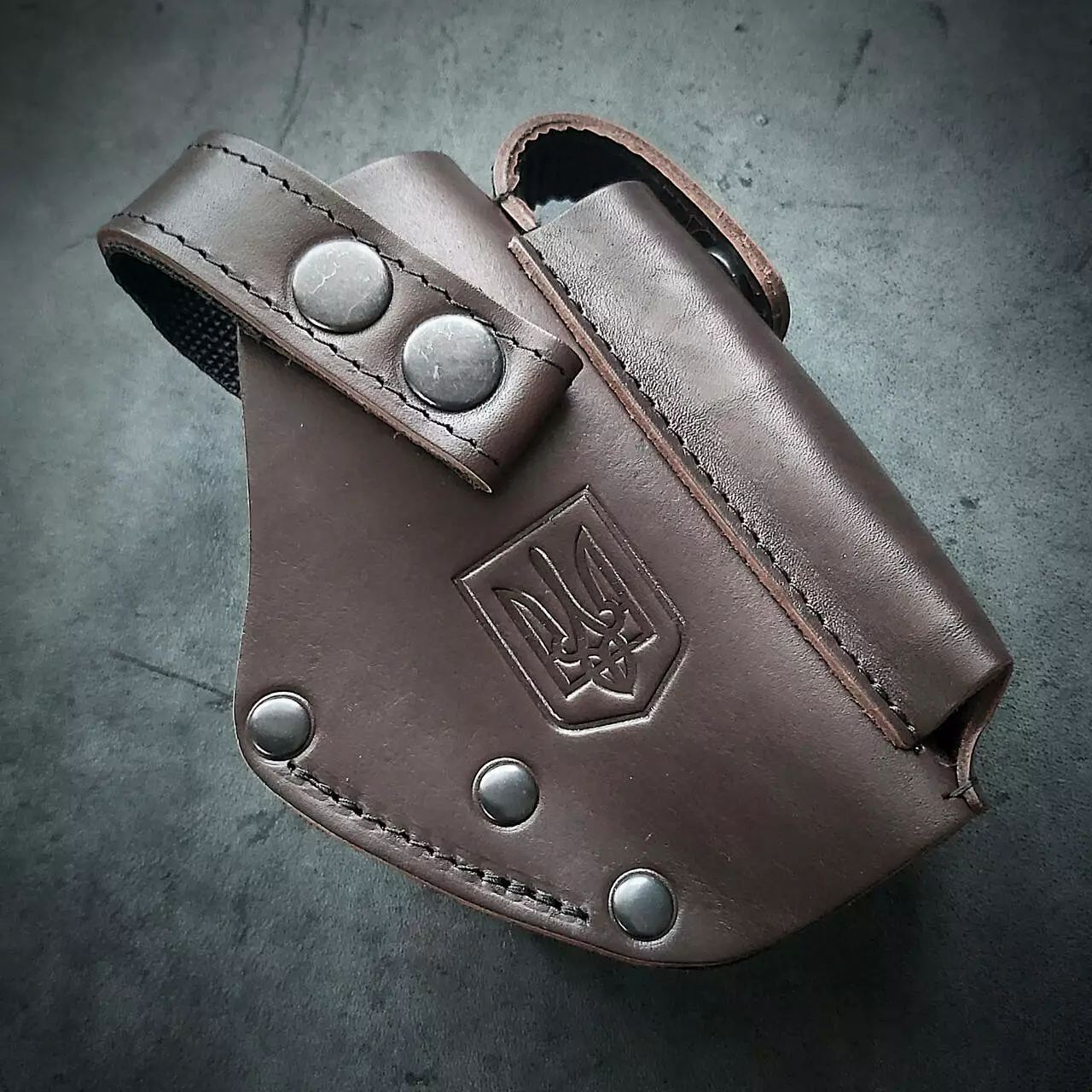 Шкіряна кобура поясна для пістолета ПМ| герб України| на скобі| коричнева