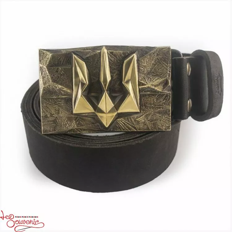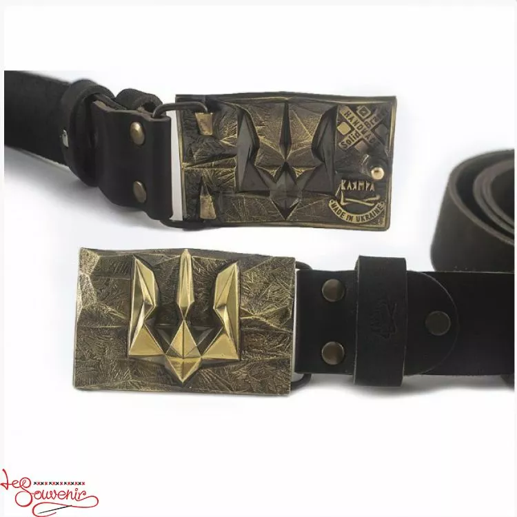 Шкіряний чорний ремінь із золотистою пряжкою із зображенням