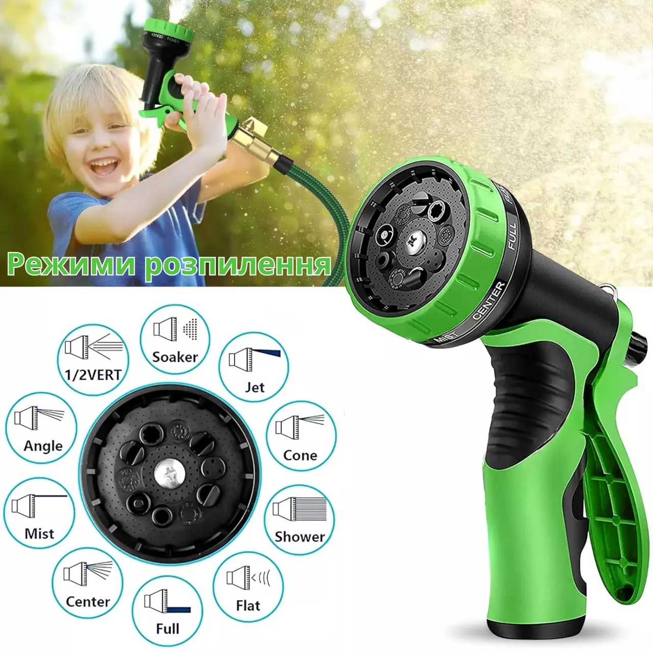 багатофункціональний пістолет-розпилювач з 10 режимами поливу, який