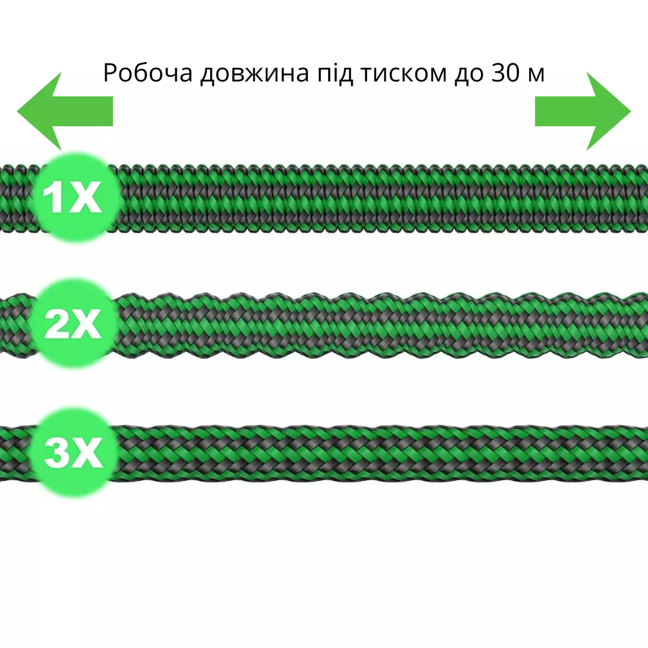 шланг розтягується до 30 м, а після вимкнення води автоматично