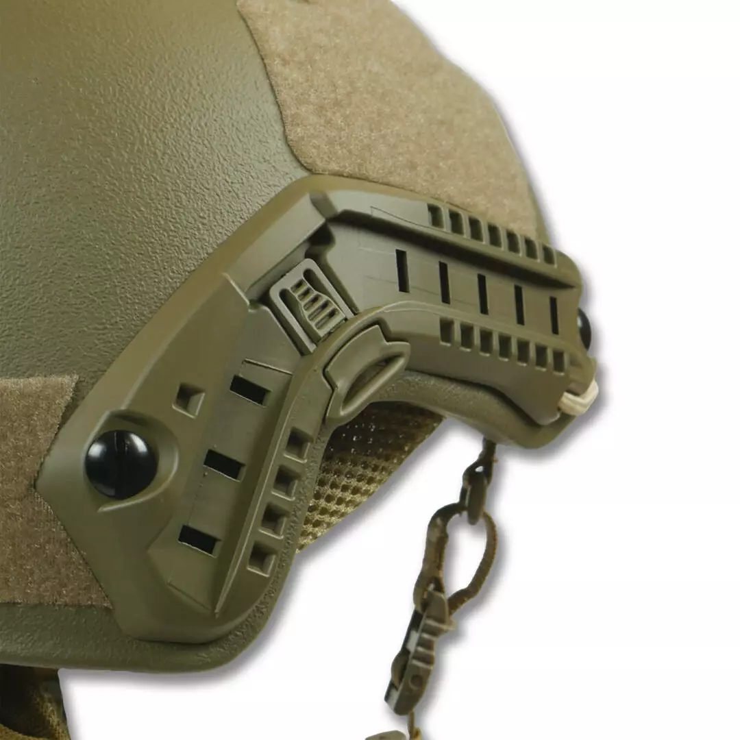 Шлем PE Fast NIJ IIIA Стандарт NATOСерия шлемов FAST отличается характерной формой оболочки с большими боковыми вырезами под ушные раковины. За счет уменьшения площади защиты боковых проекций шлема стало возможным: усилить защиту задней затылочной кости, оптимизировать распределение для обеспечения устойчивости шлема и его интеграцию с нашоломным оборудованием.