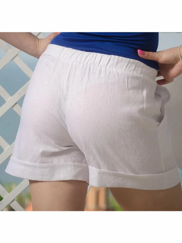 Шорти з натуральної лляної тканини з кишенями збоку та гумкою