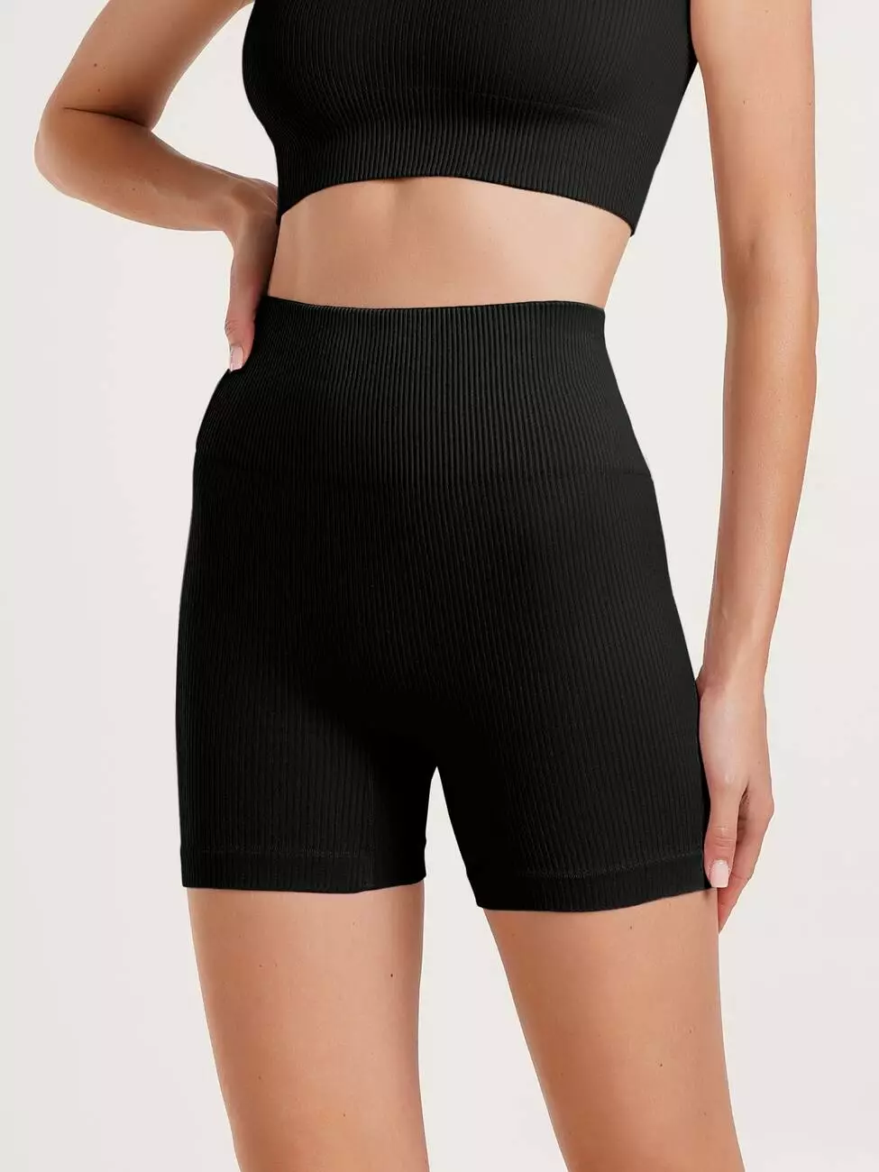 Жіночі безшовні шорти з мікрофібри в рубчик — стильний і комфортний варіант для щоденного носіння та тренувань. Висока посадка та широкий пояс забезпечують підтримку й зручну посадку по фігурі. Довжина до середини стегна додає трендового вигляду, а моделюючий шов з ефектом push-up підкреслює силует. Еластичний матеріал не сковує рухів і зберігає форму.