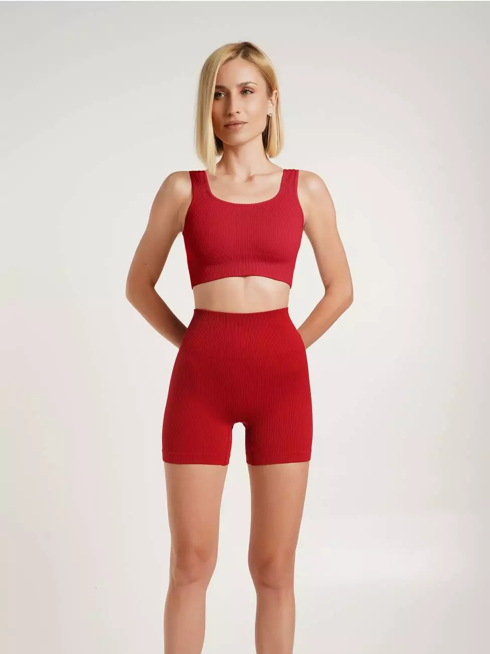 Жіночі безшовні шорти з мікрофібри в рубчик — стильний і комфортний варіант для щоденного носіння та тренувань. Висока посадка та широкий пояс забезпечують підтримку й зручну посадку по фігурі. Довжина до середини стегна додає трендового вигляду, а моделюючий шов з ефектом push-up підкреслює силует. Еластичний матеріал не сковує рухів і зберігає форму.