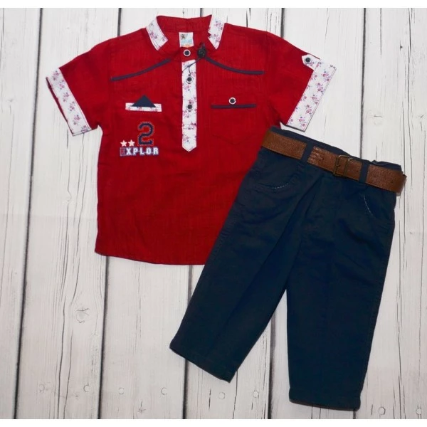 Модный костюм для мальчика состоит из стильной красной рубашки с