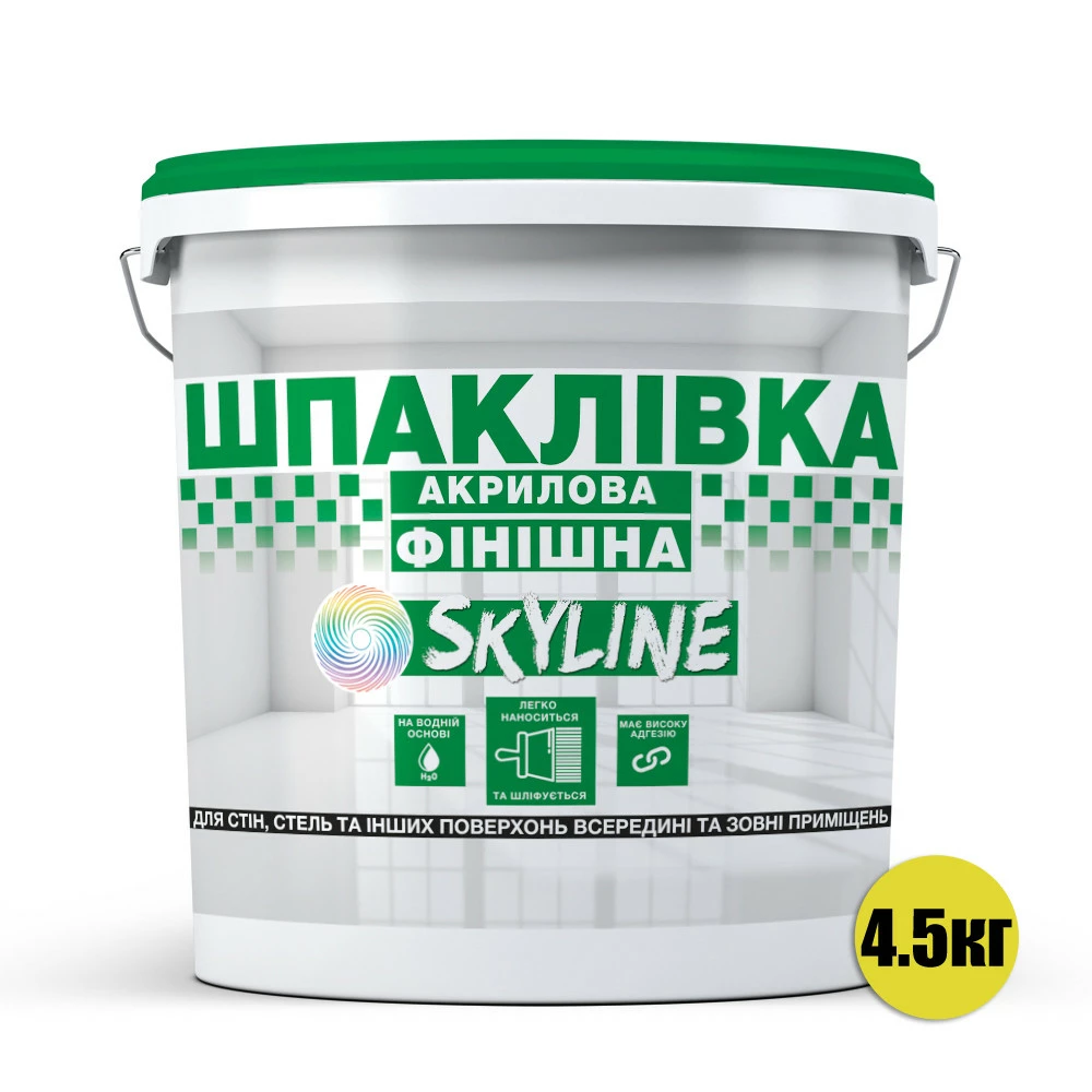 Шпаклевка акриловая финишная, готовая к применению для внутренних и наружных работ SkyLine Белоснежная 4.5 кг