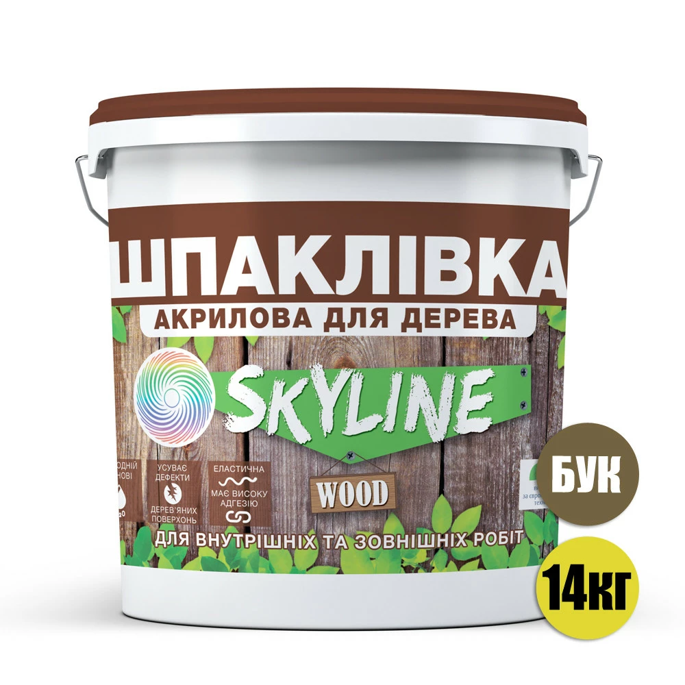 Шпаклевка для дерева акриловая для внутренних и наружных работ SkyLine Wood (Скайлайн Вуд). Водоразбавляемая. Готовая к применению. Эластичная, с высокой адгезией к разным типам основ. Быстро сохнет, легко шлифуется, заполняет поры. Устраняет дефекты любых деревянных поверхностей. Не содержит органических растворителей. Уменьшает расход лакокрасочных материалов, которые наносятся после шпаклевания. Имитирует оттенки дерева. Без запаха.