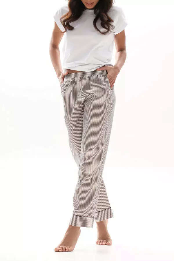 Легкі та комфортні штани із 100% натуральної бавовни. Ідеальні для дому чи сну. Дизайн у класичну рожево-білу смужку із еластичним поясом для зручної посадки