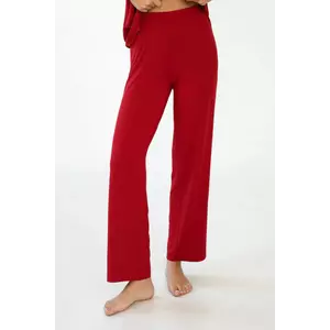Бордовий колір додає штанам вишуканості та глибини, надаючи вашому образу елегантного і романтичного вигляду. Цей насичений відтінок підкреслює вашу індивідуальність та додає тепла й затишку, роблячи ці штани стильним акцентом домашнього гардеробу. Бордовий колір завжди асоціюється з розкішшю та жіночністю, тому вони підходять як для тихих вечорів вдома, так і для моментів відпочинку, коли ви хочете відчувати себе доглянутою та привабливою.